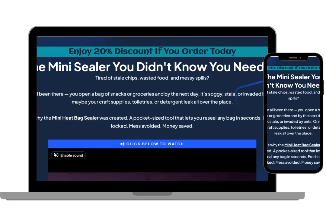 This project involved designing a high-converting sales funnel for a heat bag sealing machine, targeted at small business owners and retailers who package food and products.
